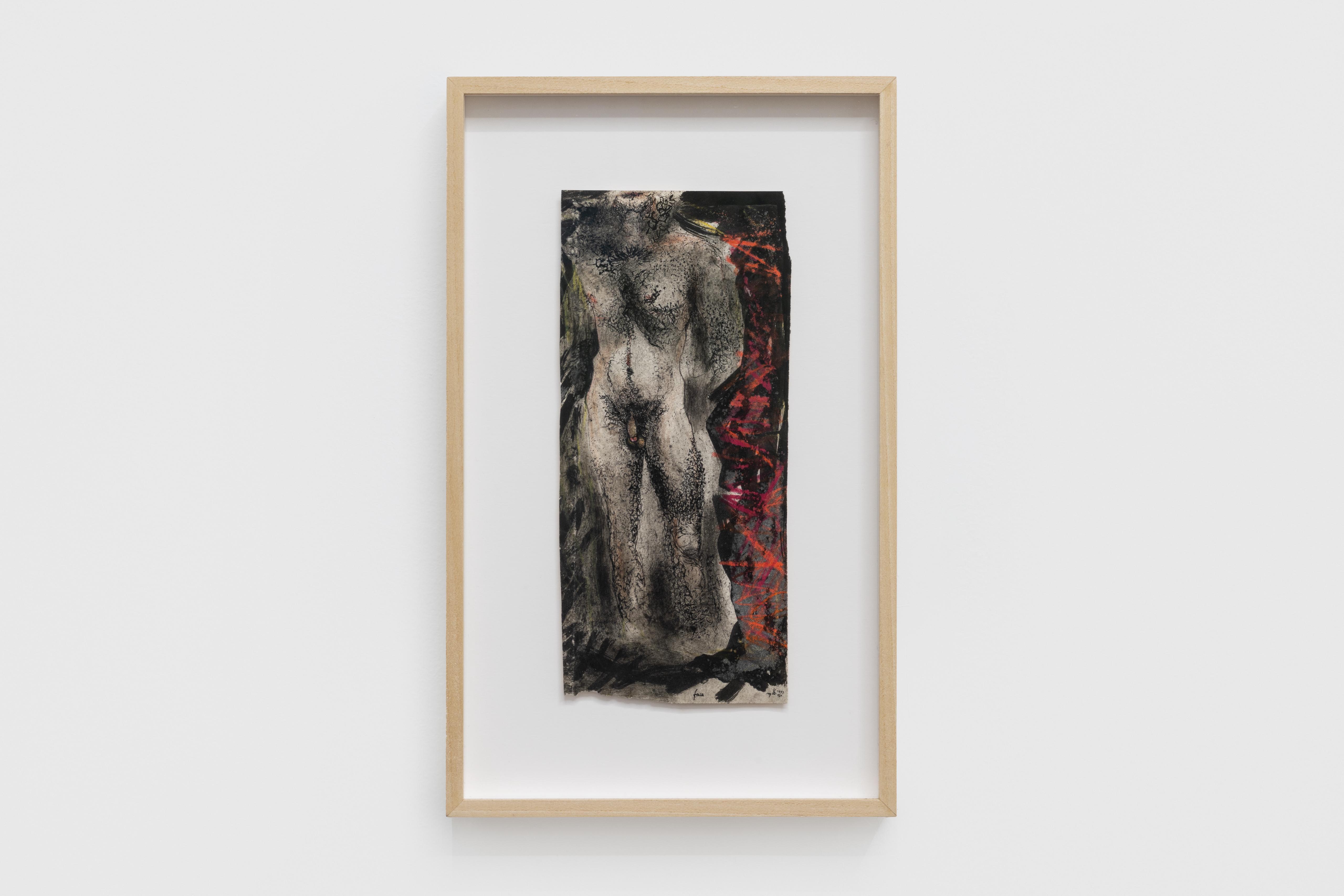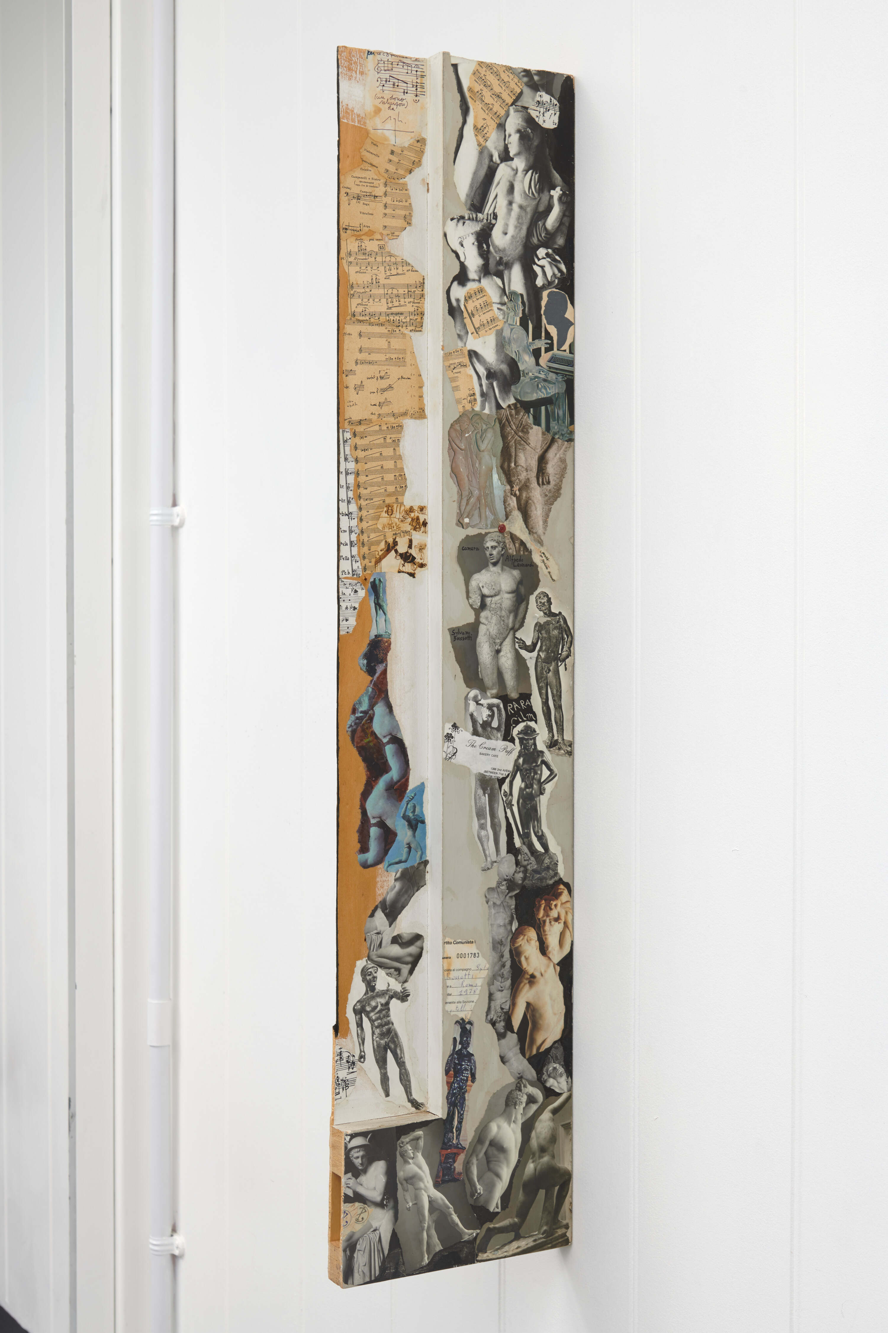 Equally, collage was not just a technique for Bussotti; it was a structural principle that ran through his entire oeuvre: from set design, to painting, to writing, each operation possessing a dramaturgical spirit that glimpsed at Bussotti’s characteristic nature of fragmenting, overlaying, detaching and attaching again. The works on view here, all made in the 1990s, are not discrete visual objects, they must instead be read as sites where notation, image, body, and desire converge in composition.