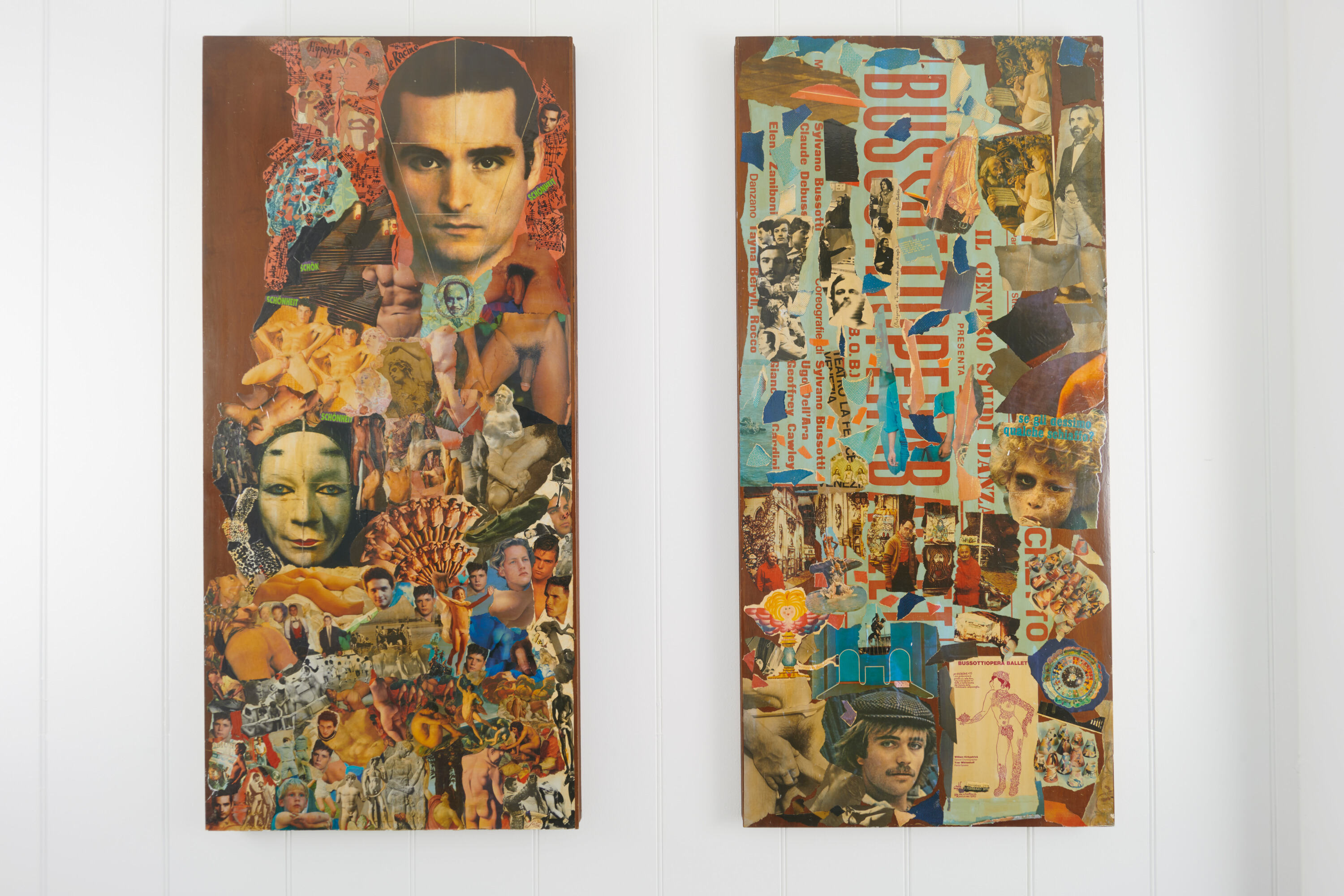 Eroticism plays a crucial role in this dramaturgy. Bussotti’s collages are imbued with a frank and often transgressive sensuality that cannot be separated from their formal construction. Bodies appear fragmented, stylized, or partially concealed; desire is suggested through gesture, posture, and proximity rather than narrative. This erotic charge is not decorative. It is structural. It reflects Bussotti’s conception of composition as a corporeal practice and his resistance to any division between formal invention and lived experience.